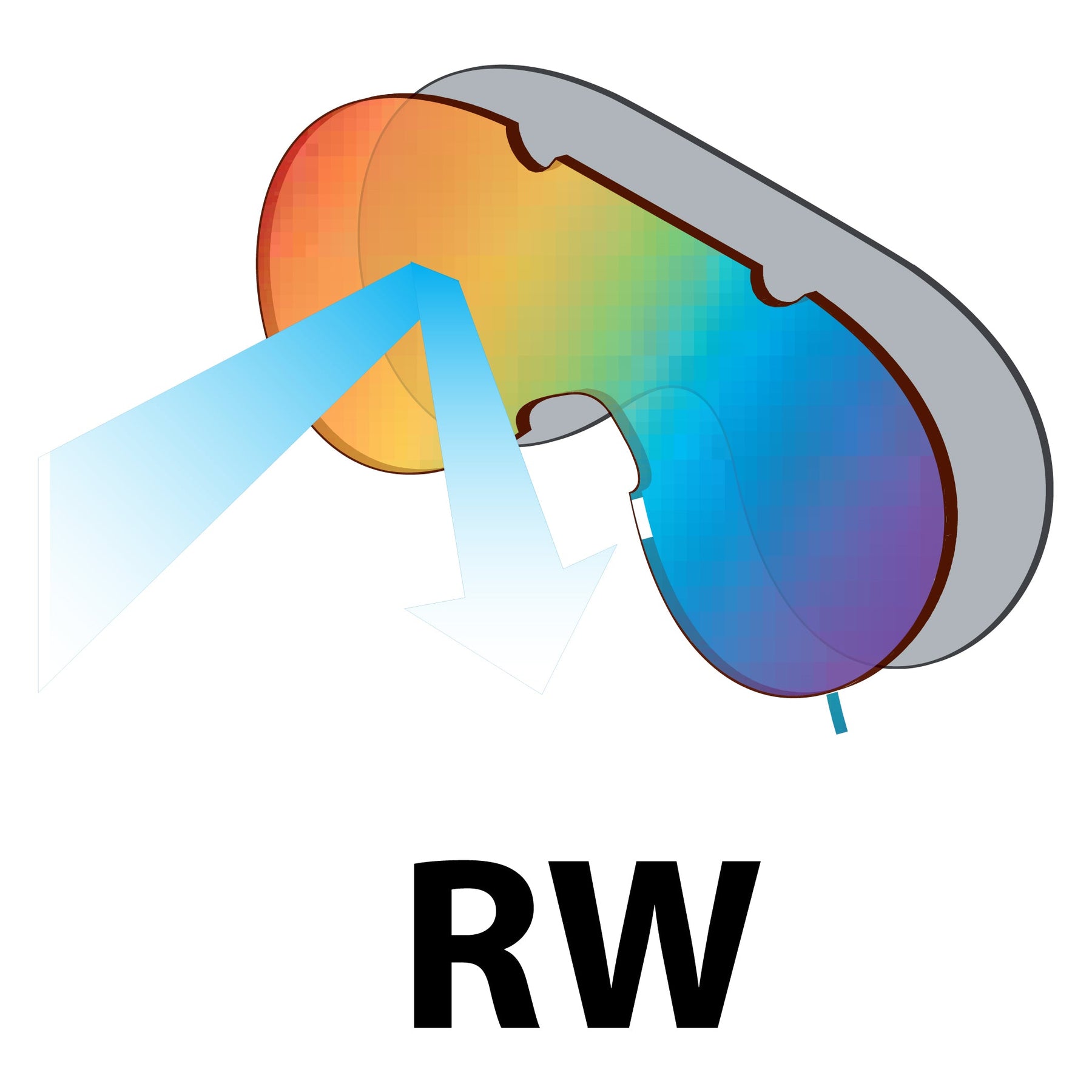Polycarbonate anti-scratch rainbow lenses (RW) undergo a surface mirroring process to reduce light blinding and glare from water, snow and ice. The filtering power of the lenses is greatly enhanced. |
