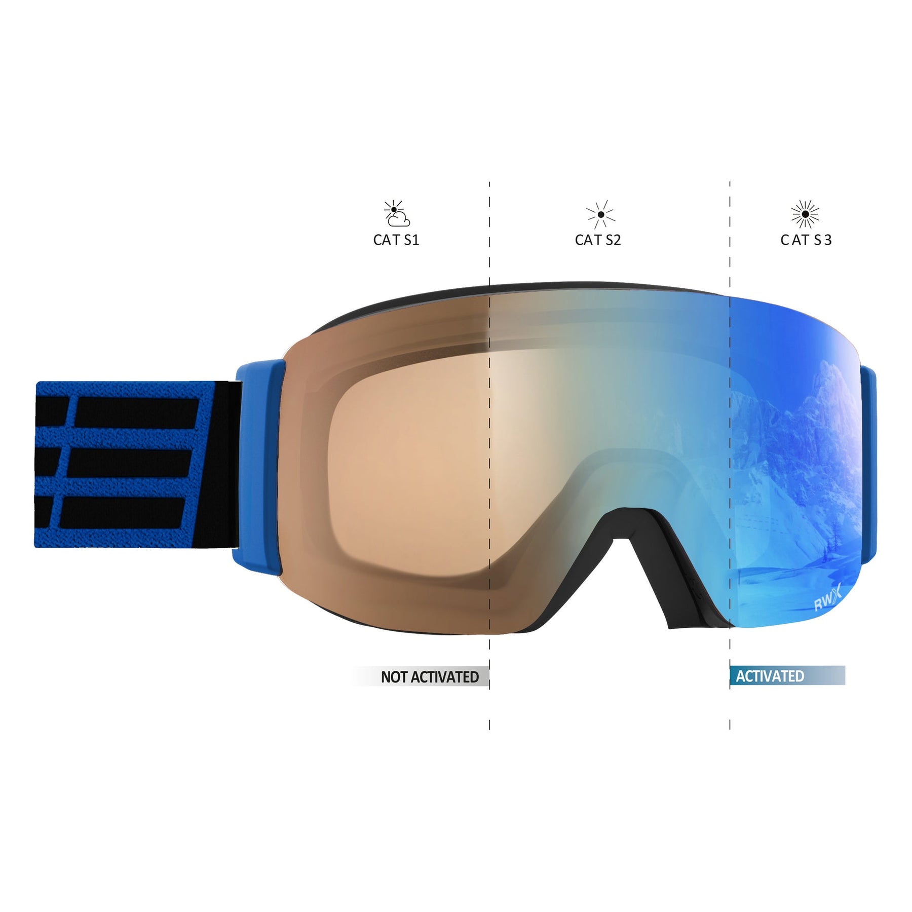 The RWX lens is photochromic, light adaptive with an improved enhanced technology meaning the RWX activates and fades at a faster rate using fast kinetics and colour differentiation. The RWX by NXT ranges from Category 1 to Category 3, suitable for cloudy days through to full sun. As well as this, the lens also has a subtle gloss appearance when not activated and when activated the blue mirror surfacing becomes more intense contributing to reduced glare and eye fatigue.