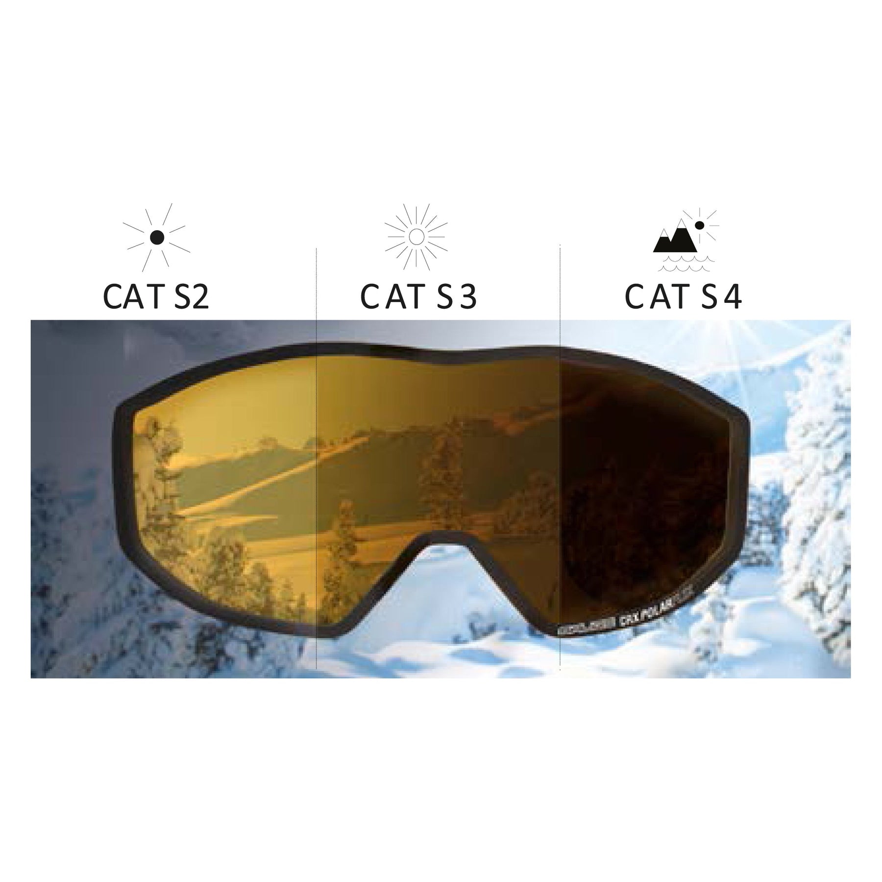 The category number equates to a percentage of the VLT (Visible Light Transmission) that is, how much light the lens lets through. The higher the VLT the lighter the lens, conversely the lower the VLT the darker the tint will be, blocking more light coming through to the eye. | ||||